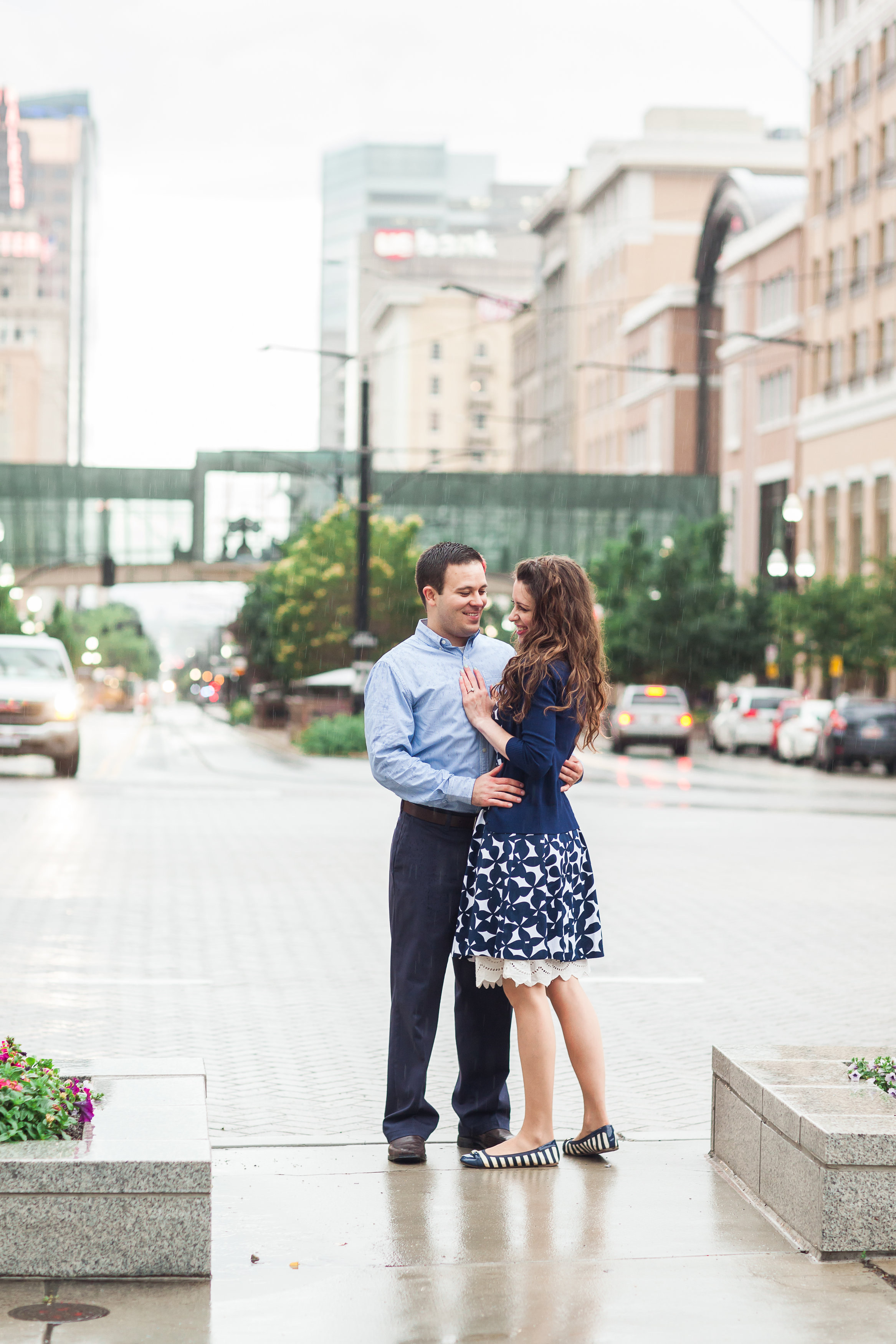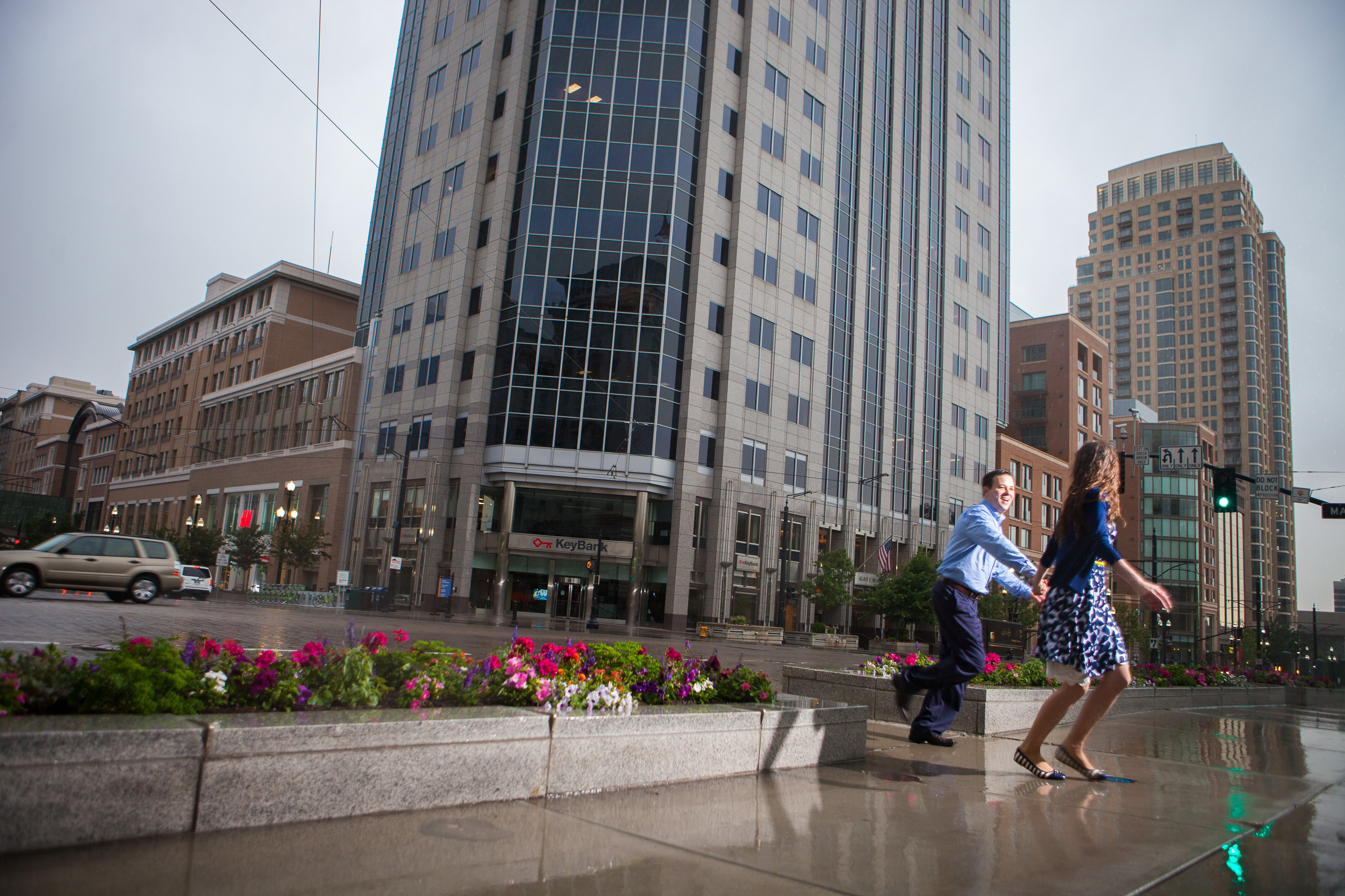 After dinner, Tiffany thinks it is her idea to head to the roof of the Conference Center across the street to view the cityscape. Little does she know that Brenton has an elaborate scheme. Arriving on the roof, and in the sprinkling rain, Brenton gets down on one knee and asks Tiffany to be his eternal companion.